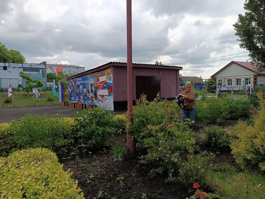 20 июня 2025 года в ходе реализации проекта проводится большая работа в Саду Памяти. Благодаря поддержке Фонда президентских грантов, в саду создана патриотическая площадка, высажены новые растения, установлены вазоны с цветами, проведена стрижка кустарников. Получилась отличное обучающее и развивающее пространство , куда приходят дети, чтобы чтить павших героев. Посаженные растения – самая лучшая память. Будут сменяться поколения, а деревья будут продолжать расти, радуя своим зелёным нарядом. Тревожило только то, что асфальтовое покрытие на площадке требовало замены. Было принято решение обратиться в ООО Белдорстрой с просьбой о замене асфальта на данном участке. Руководство ООО Белдорстрой сразу пошло навстречу и очень скоро рабочие уложили новое покрытие на патриотической площадке в Саду Памяти.